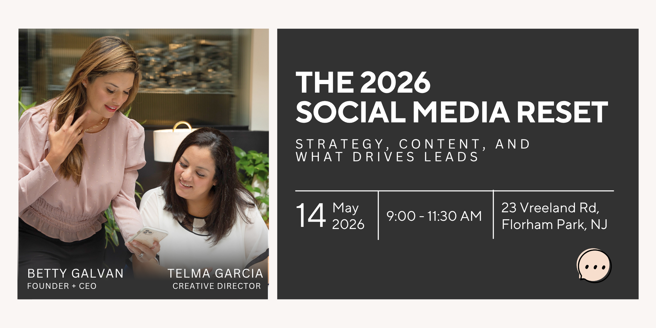 Join Betty and Telma (My Friend Betty Says’ Lead Creative Director) for a 2.5-hour, highly interactive workshop where we break down what’s happening right now in social media and how to turn it into real business growth.